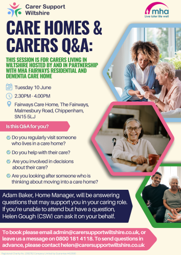 This Carers Week, we’re excited to be teaming up with MHA Fairways Residential and Dementia Care Home to bring you a friendly Q&A session, designed especially for carers across Wiltshire!